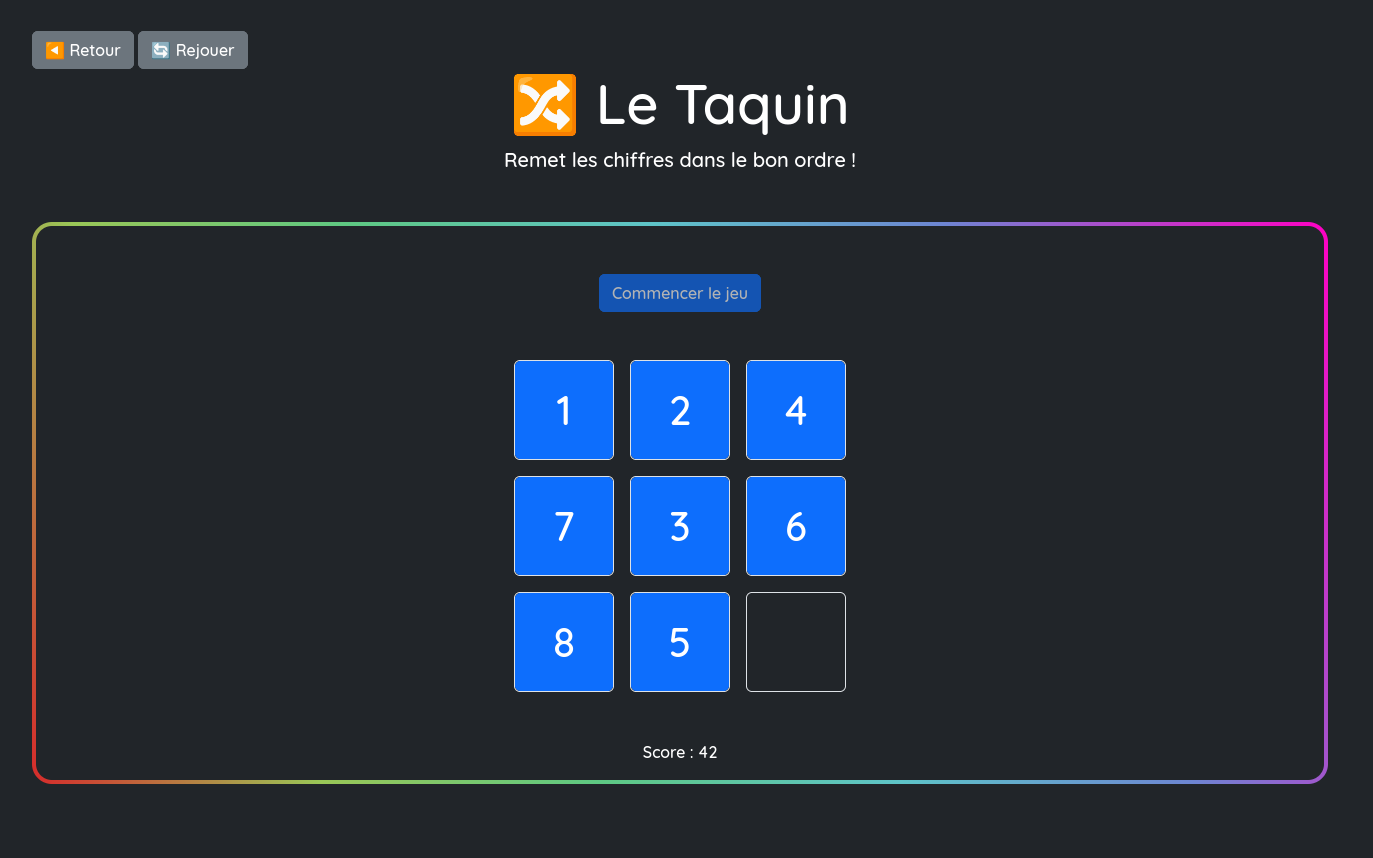 Capture d’écran d’une partie de Taquin, l’un des nombreux mini-jeux disponibles.